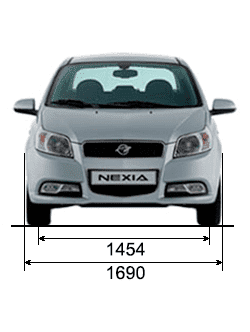 Лицевая часть у Нексии немного иная, нежели у седана Авео. На передней части разместилась головная оптика, которая перекочевала с хэтчбека Авео. Между основных фар разместилась довольно привлекательная радиаторная решетка, которая немного выступает вперед и обрамлена хромированными полосками.